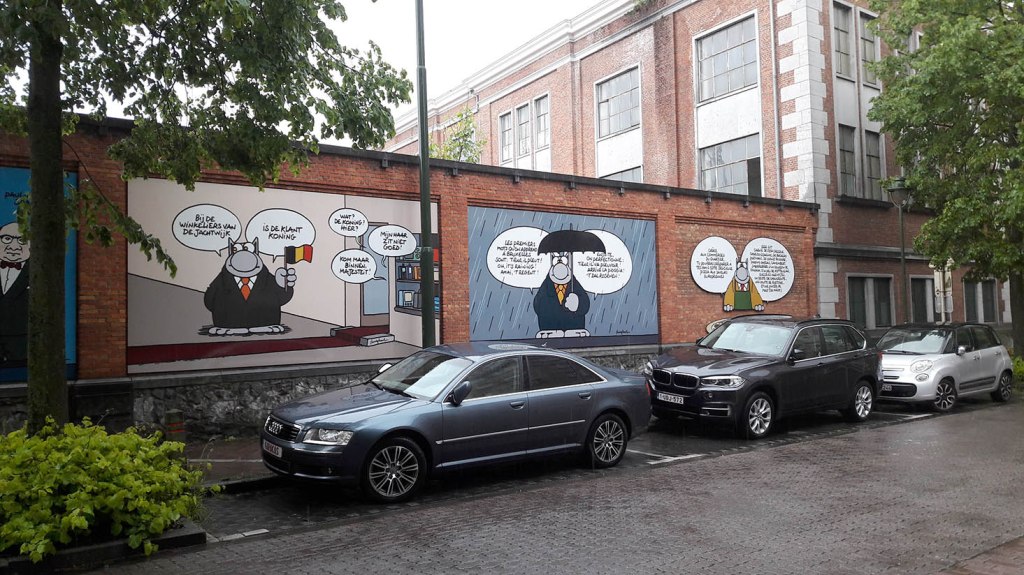 Approche également le premier coup de pioche de ce qui ressemble à une pitrerie: le Musée/Palais du Chat, place des Palais, cela va de soi . Comme dit précédemment l’auteur en est le prestigieux Pierre Hebbelinck et son bureau. Là n’est d’ailleurs pas l’interrogation, ne remettant en cause aucune de ses qualités.